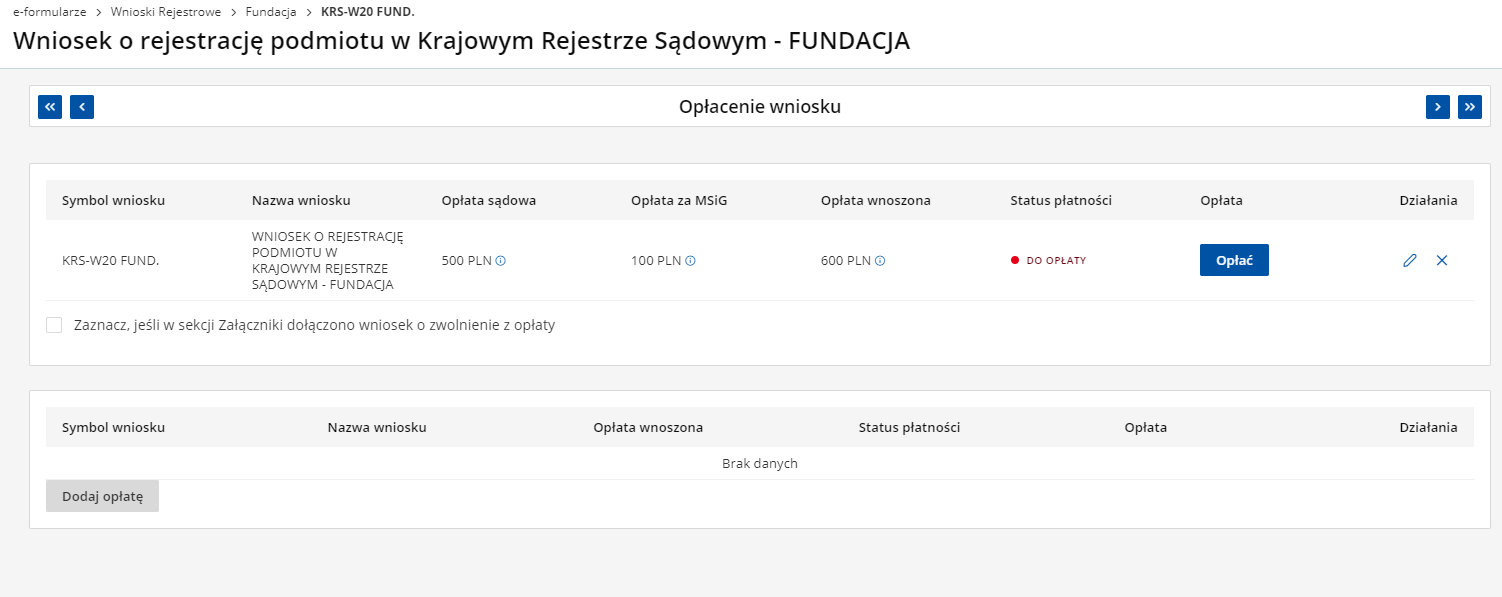 Za rejestrację fundacji trzeba zapłacić. Można to zrobić od razu z systemu PRS albo “na zewnątrz”.